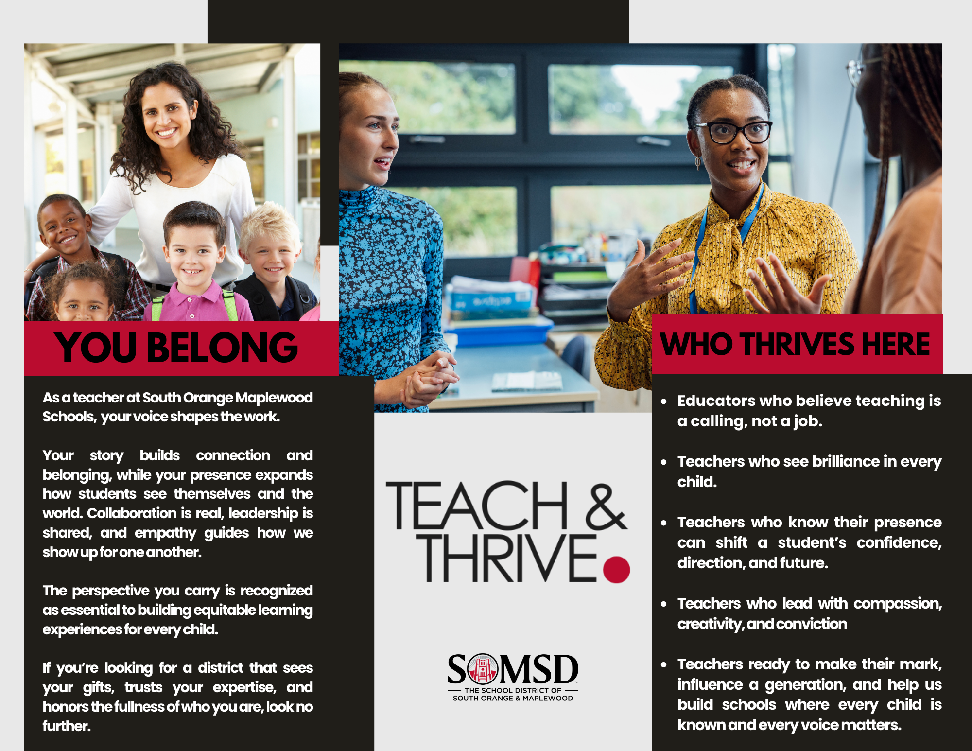 Led narrative strategy and messaging for the South Orange-Maplewood district-wide recruitment campaign, transforming institutional values into a clear, compelling story designed to strengthen educator attraction and community connection.