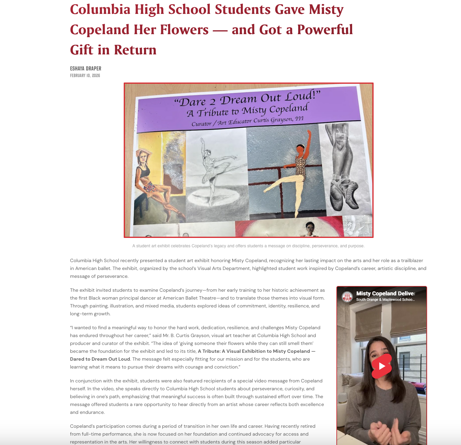 Led outreach and storytelling for a student art initiative that resulted in participation from renowned ballet dancer, Misty Copeland. Developed the narrative and coverage to amplify student efforts and elevate the moment into a meaningful district story.